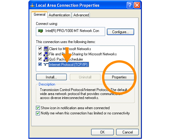 Control panel >>> Network Connections >>> Klik kanan account sambungan internet yang sedang aktif /connected >>> Properties >>> Networking >>> Internet Protocol >>> Properties >> Beri Tanda pada Use the Following DNS server addresses >>> masukan DNS yang anda pilih >> Klik Ok